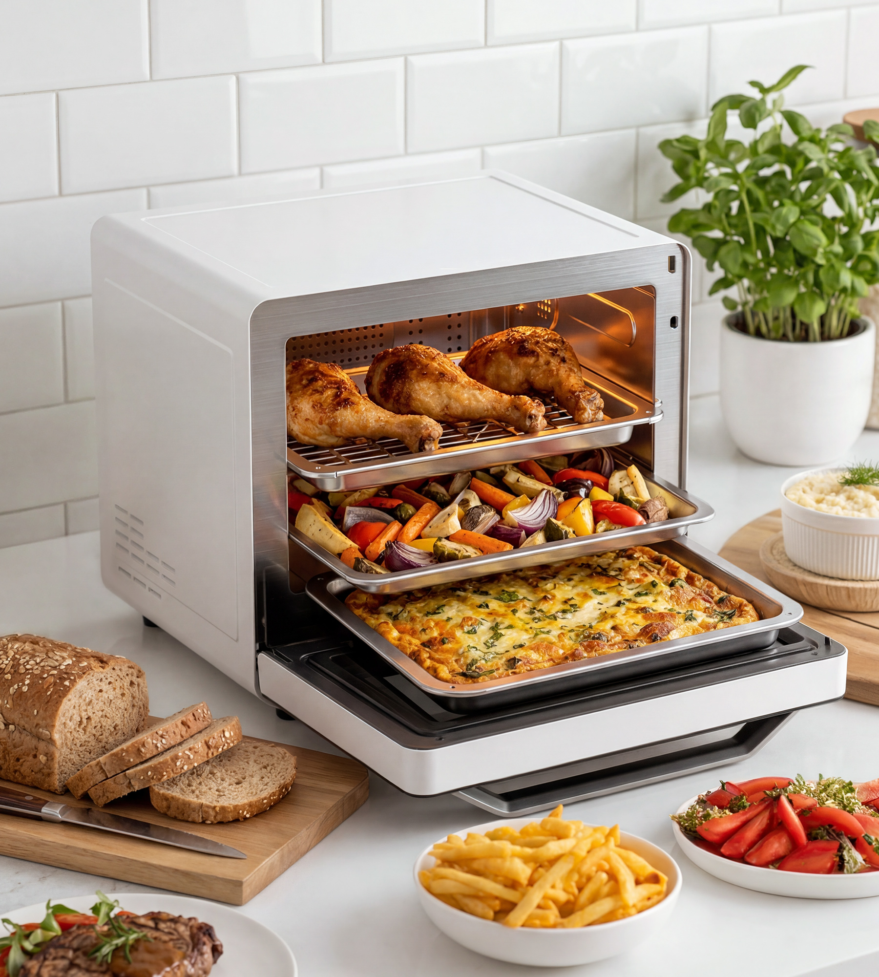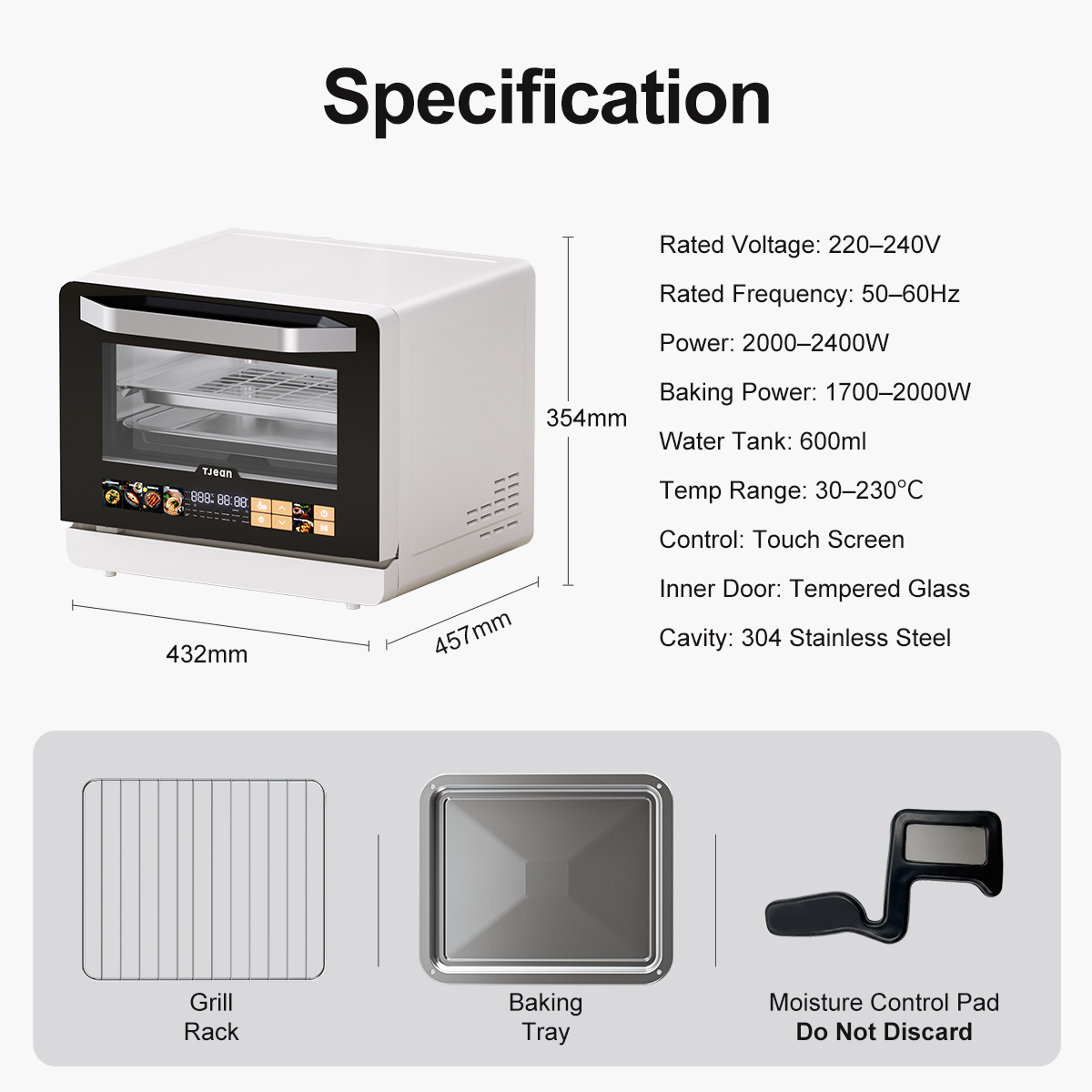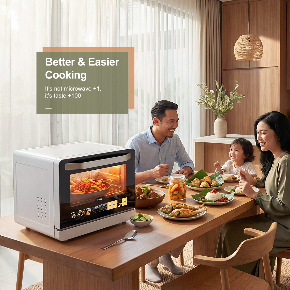 ▪ Steam & roast together: 25L fits a whole chicken, fish and sides — one oven, one feast.